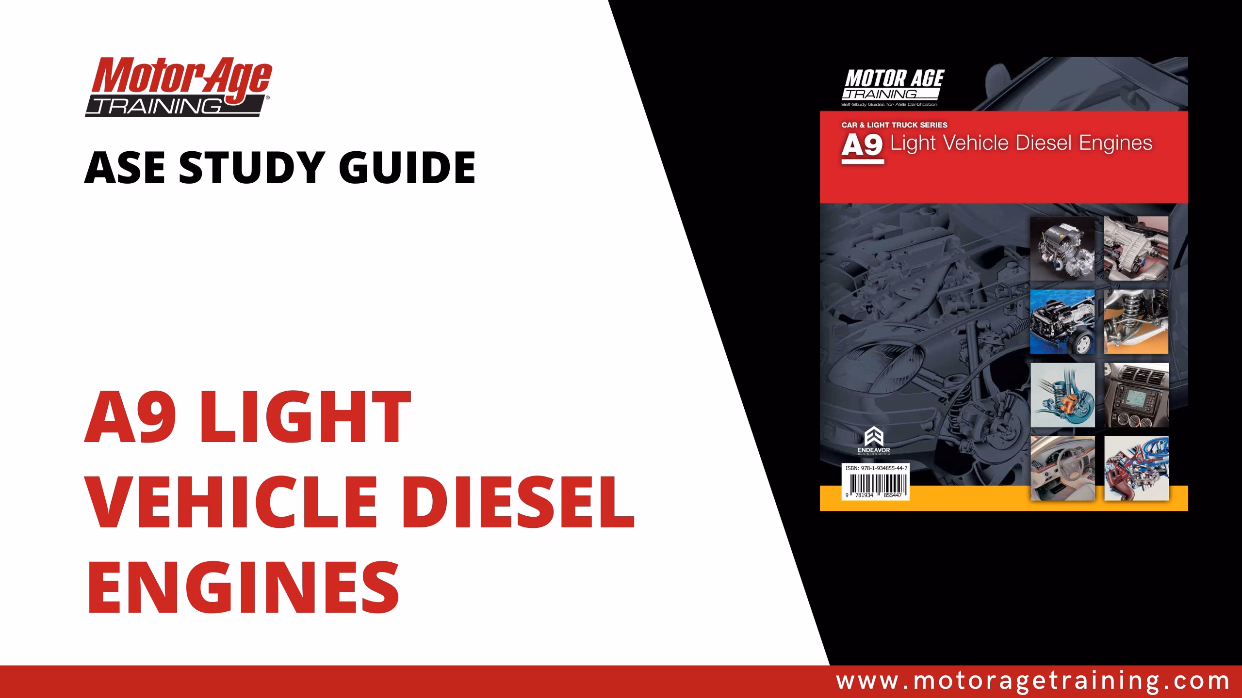 Get the knowledge, skills, and confidence you need to pass the ASE A9 Light Vehicle Diesel Engines Certification Exam with Motor Age Training’s comprehensive study materials. Whether you prefer a printed book, eBook, online video course, DVD, or a practice test, we offer flexible formats designed to fit your learning style.