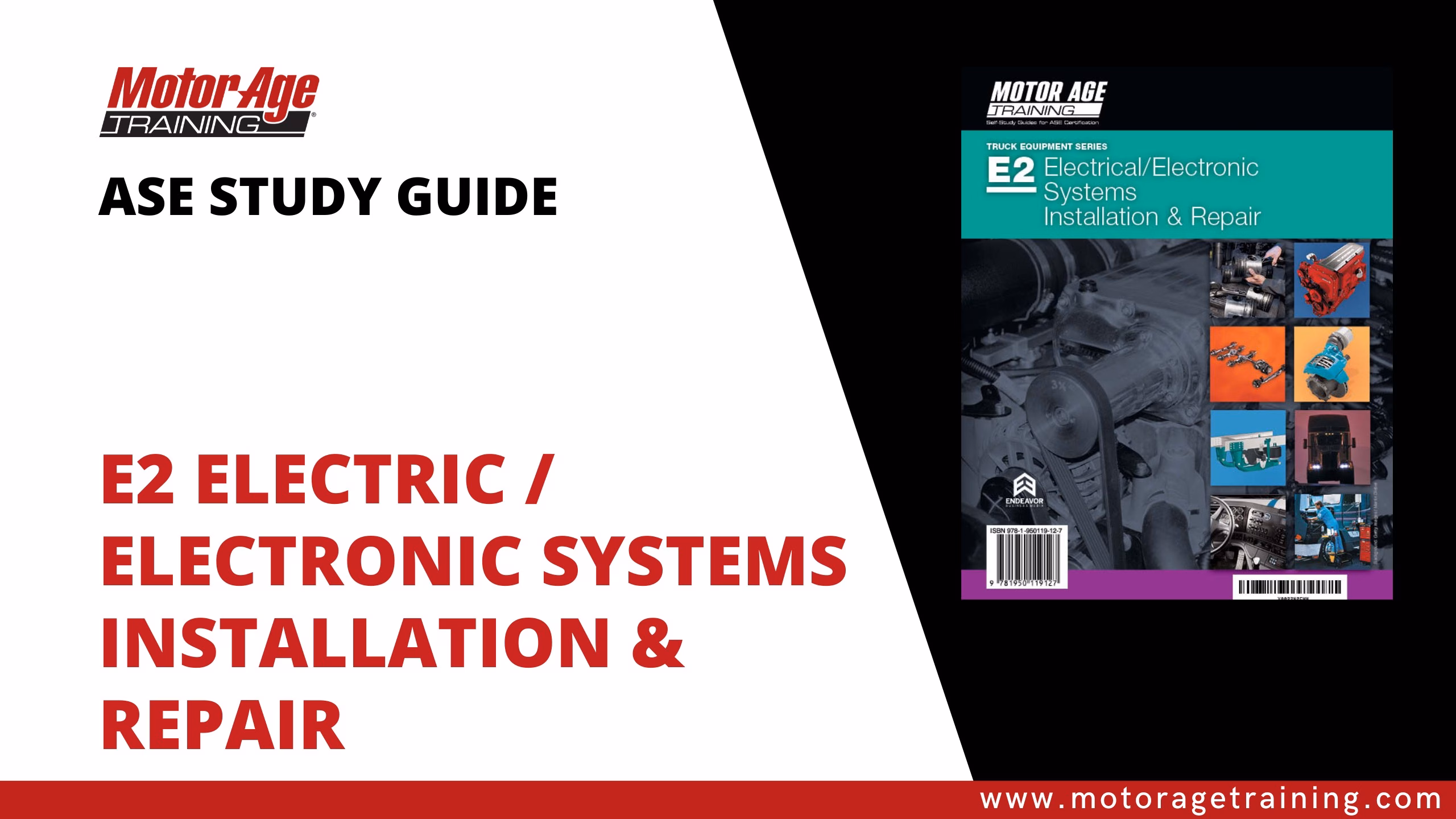 Get the knowledge, skills, and confidence you need to pass the ASE E2 Electrical/Electronic Systems Installation & Repair Certification Exam with Motor Age Training’s comprehensive study materials. Part of the Truck Equipment Series, these resources are designed for service professionals working with electrical systems who want to build their expertise and prepare effectively for the ASE E2 exam.