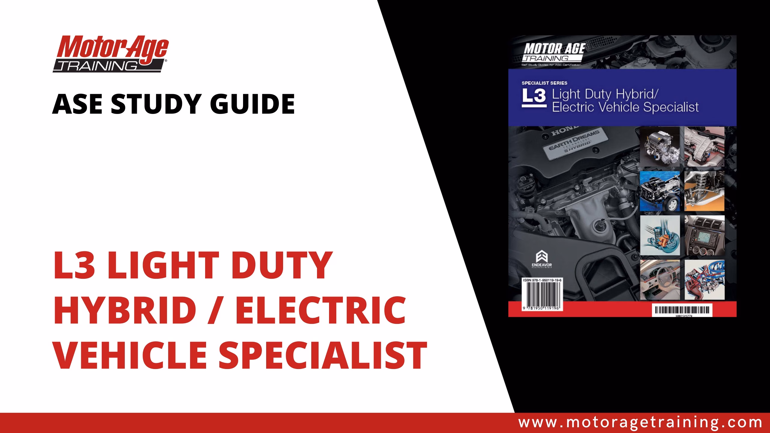 Prepare to earn your Hybrid Specialist credentials with Motor Age Training’s ASE L3 Light Duty Hybrid/Electric Vehicle Specialist study materials. This advanced program is designed to help experienced technicians master the latest hybrid and electric vehicle systems while building the confidence to pass one of ASE’s most challenging certification exams. Updated with the latest task list, these resources provide clear explanations, real-world examples, and targeted practice to sharpen your diagnostic and repair skills.