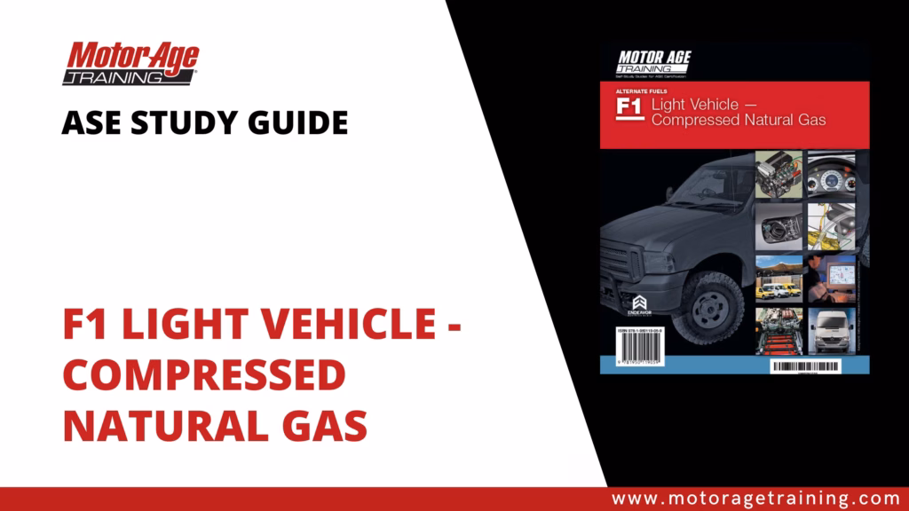 Get the knowledge and confidence you need to pass the ASE F1 Light Vehicle Compressed Natural Gas (CNG) Certification Exam with Motor Age Training’s comprehensive study materials. Newly revised in 2020, this program is designed for automotive service professionals working with CNG vehicles who want to deepen their technical expertise and prepare effectively for the ASE F1 exam.