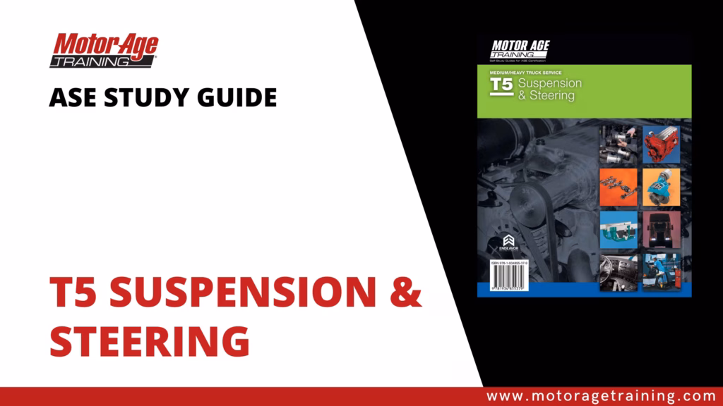 Get the knowledge, skills, and confidence you need to pass the ASE T5 Suspension & Steering Certification Exam with Motor Age Training’s comprehensive study materials. Whether you prefer a printed book, eBook, online video course, DVD, or a practice test, we offer flexible formats designed to fit your learning style.