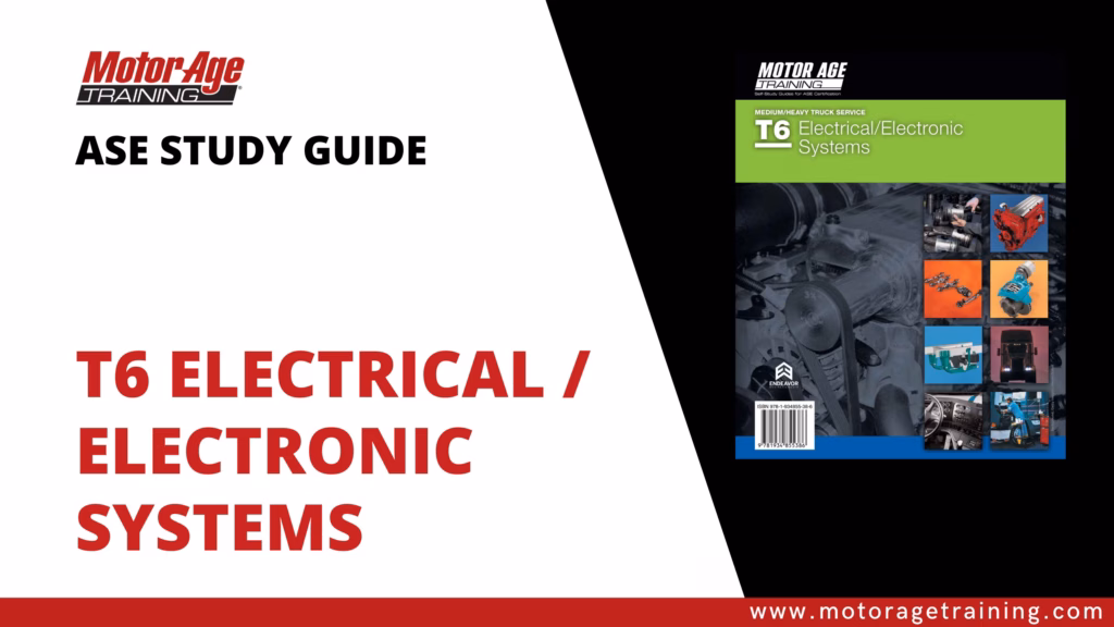 - Online Video Course (comprehensive coverage of medium/heavy truck electrical systems; includes access to the ASE T6 Test Prep Study Guide e-book PDF; runtime 258 minutes)