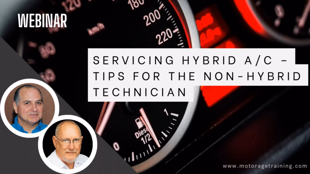 Most of the country is, or soon will be, in the middle of another A/C service season. But did you know that A/C season for most hybrids is an all-year thing? That’s because many models rely on the A/C system to keep the High Voltage battery cool. Without proper temperature control, the battery can suffer premature failure – an expensive repair option when compared to the cost of keeping the A/C working properly! And you needn’t be a fully certified hybrid tech (but it helps!) to work on these systems. In this webinar, Motor Age’s Pete Meier and TST’s G. Jerry Truglia will show you the fundamentals of hybrid technologies including an overview of heat exchangers, as well as the particulars of safely and properly servicing hybrid air conditioning systems.”
